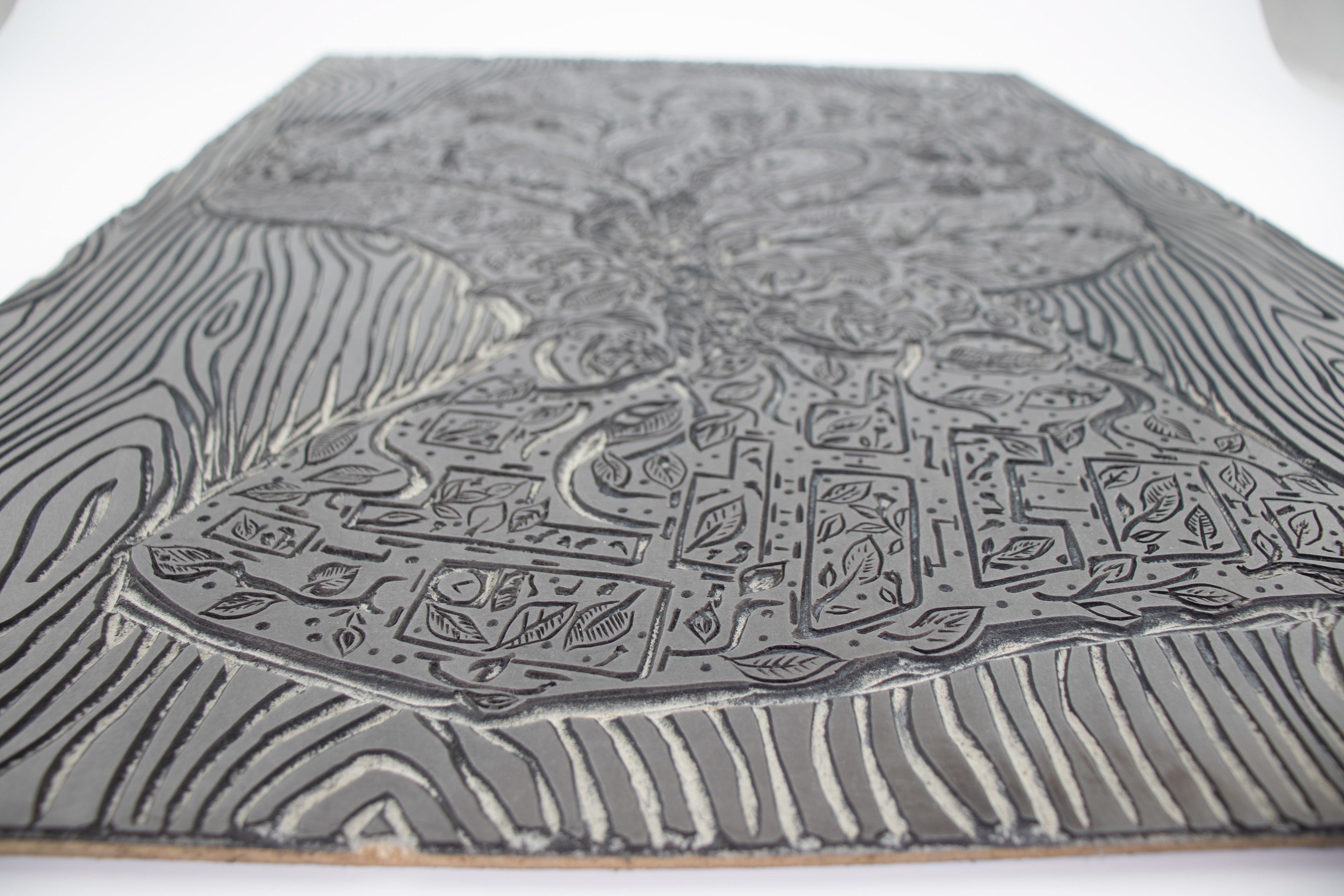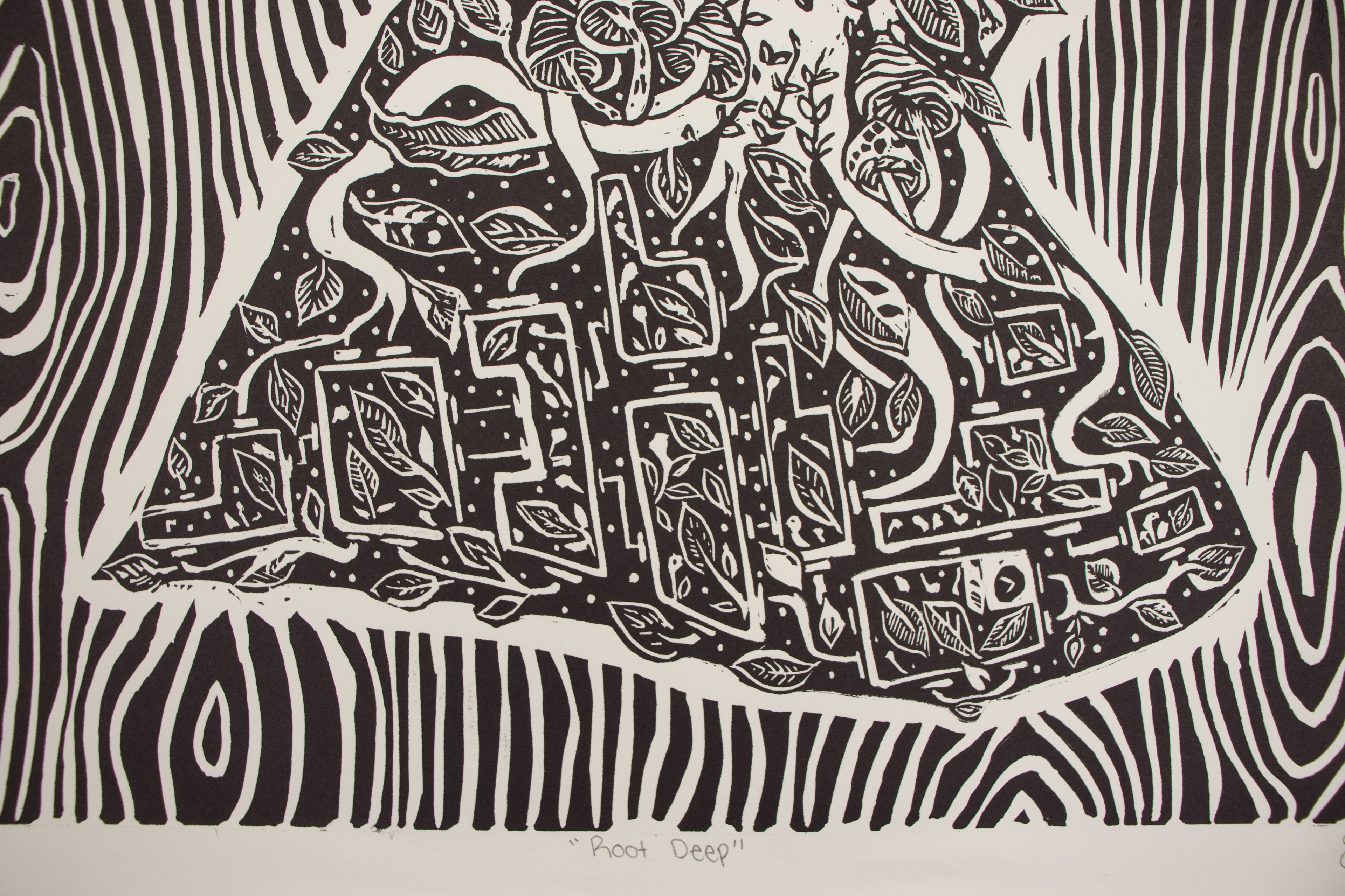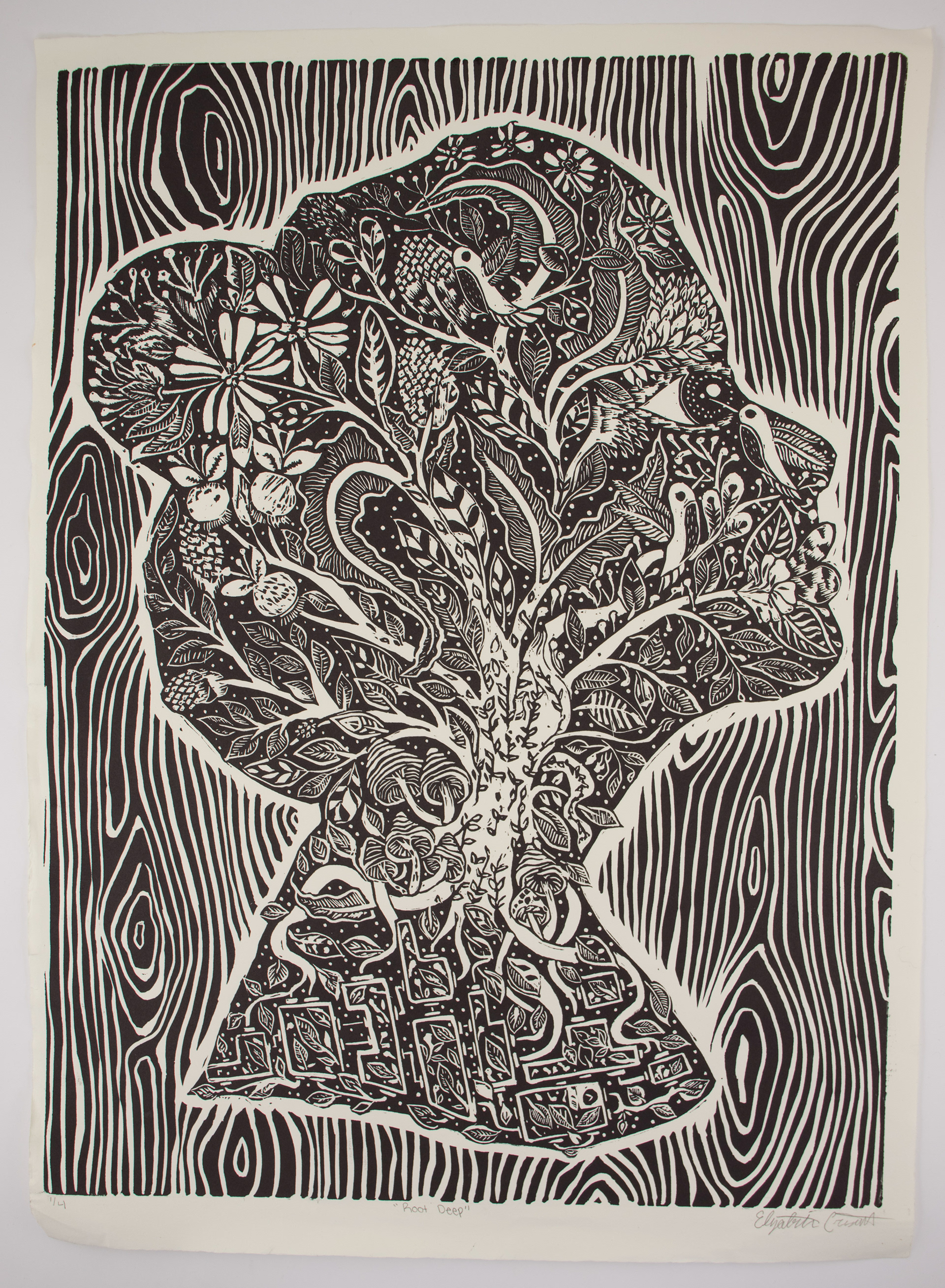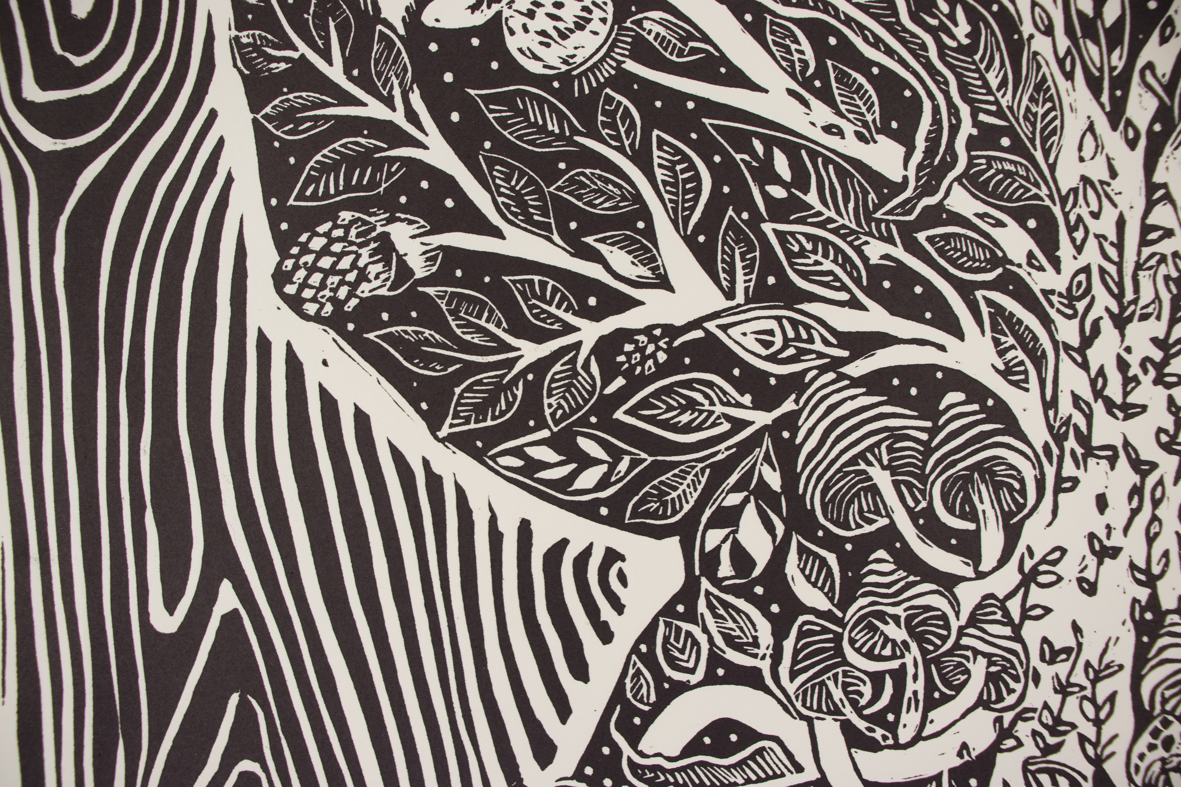 18"x24" Black and White Linoleum Relief Self Portrait Print