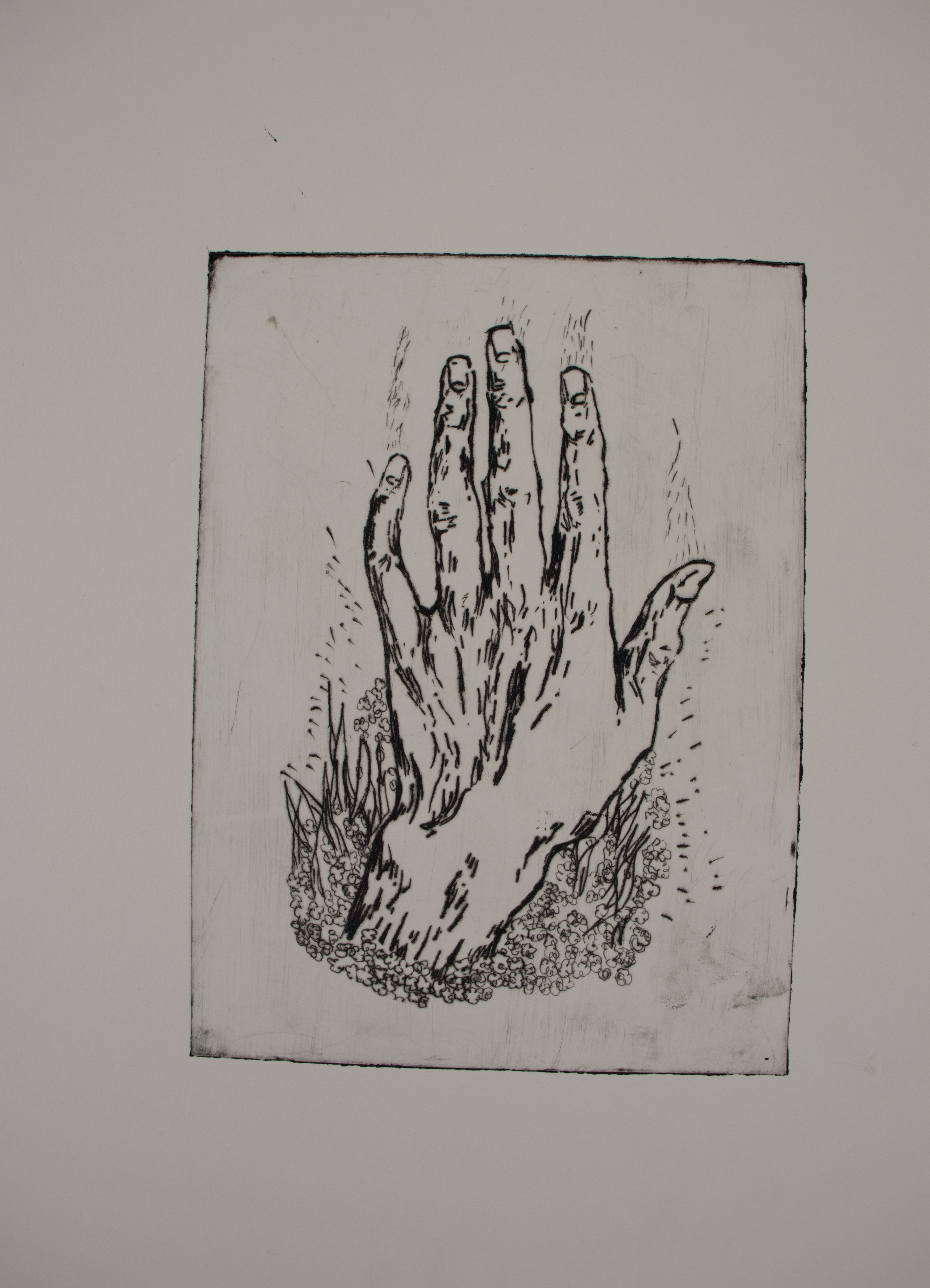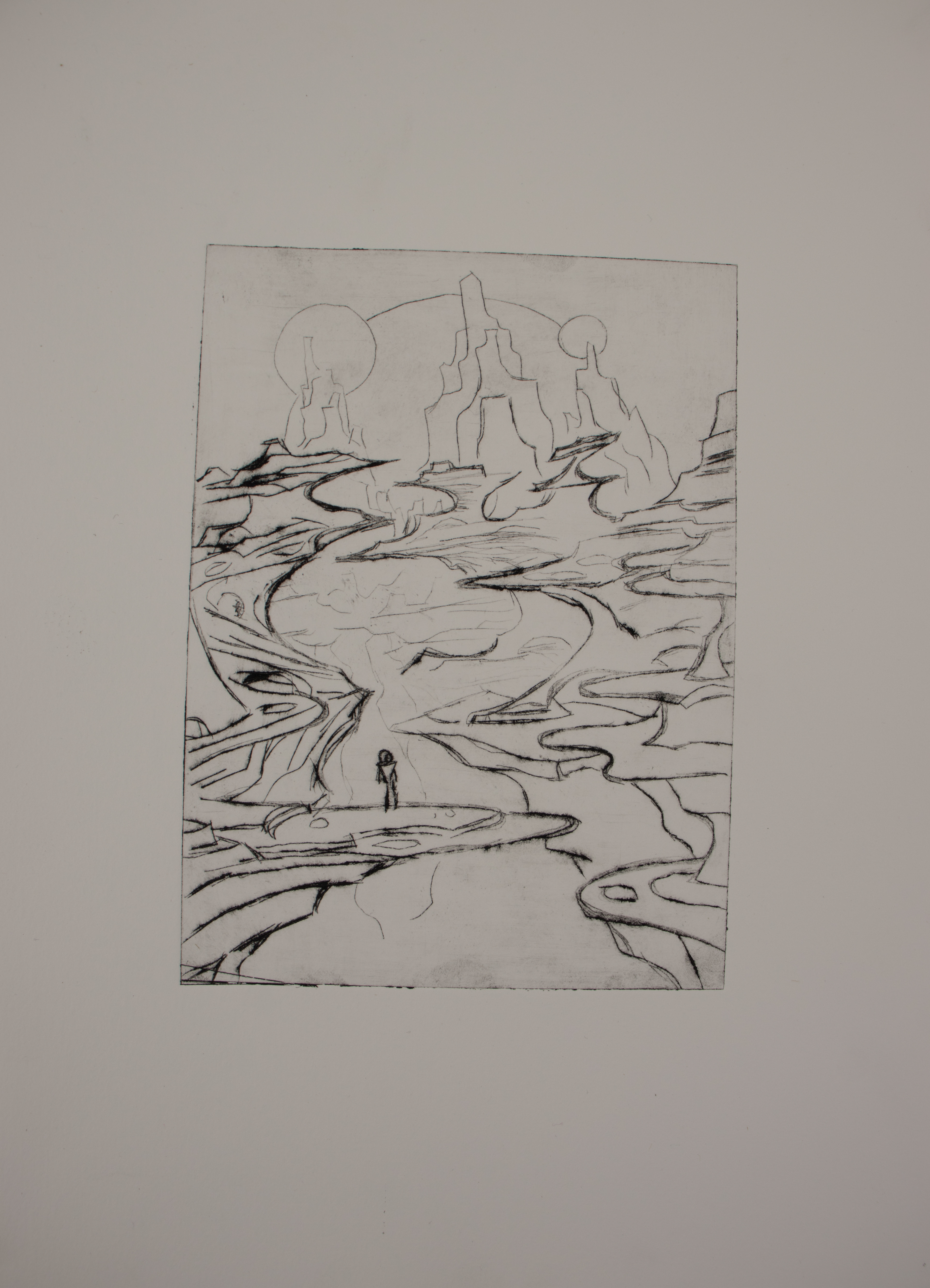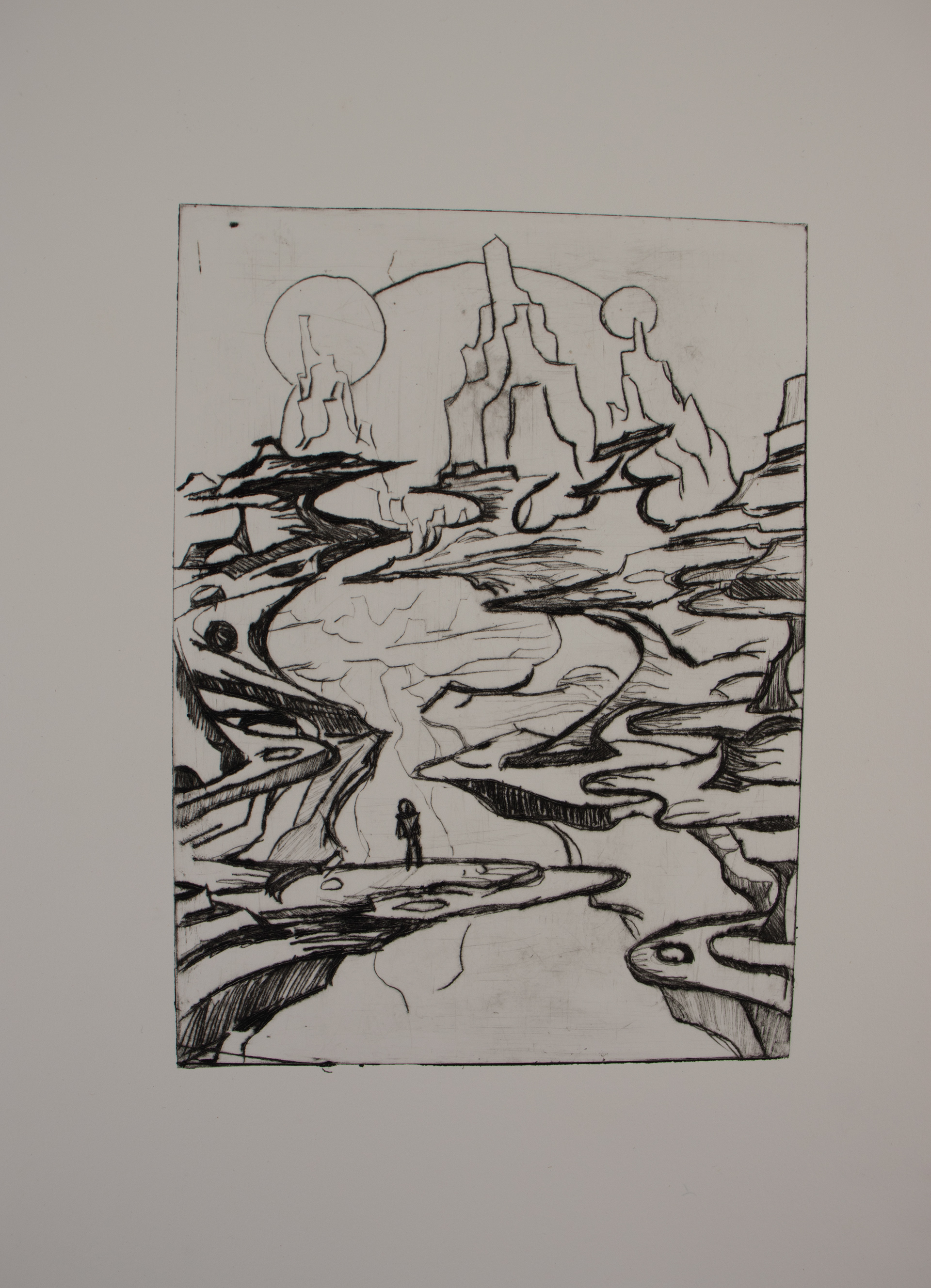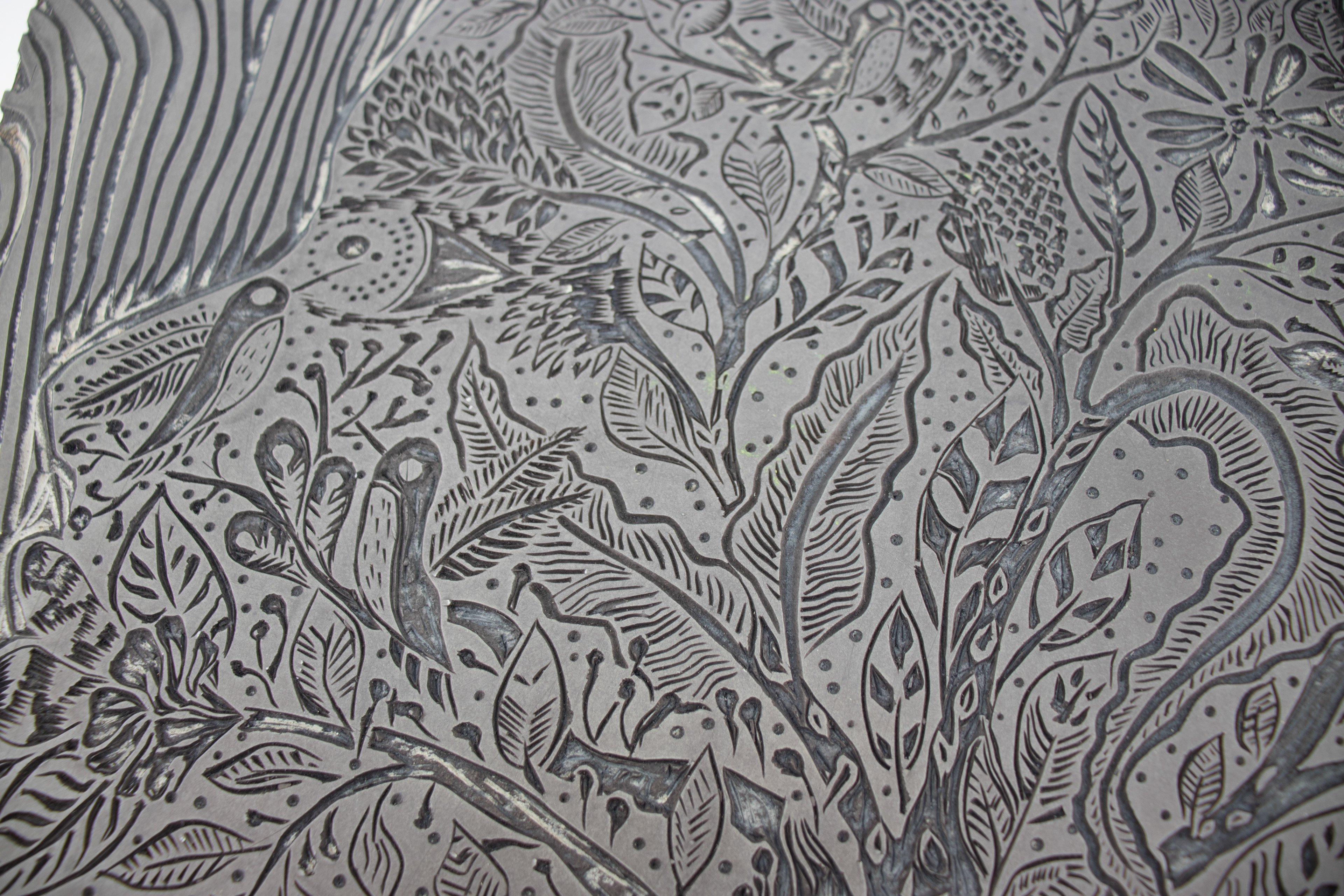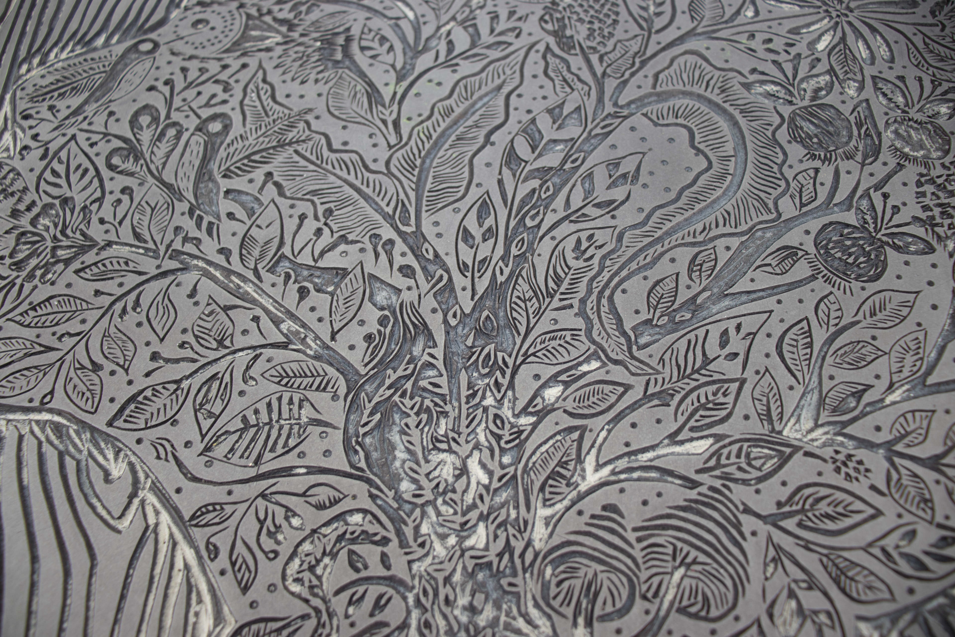 18"x24" Black and White Linoleum Relief Self Portrait Print